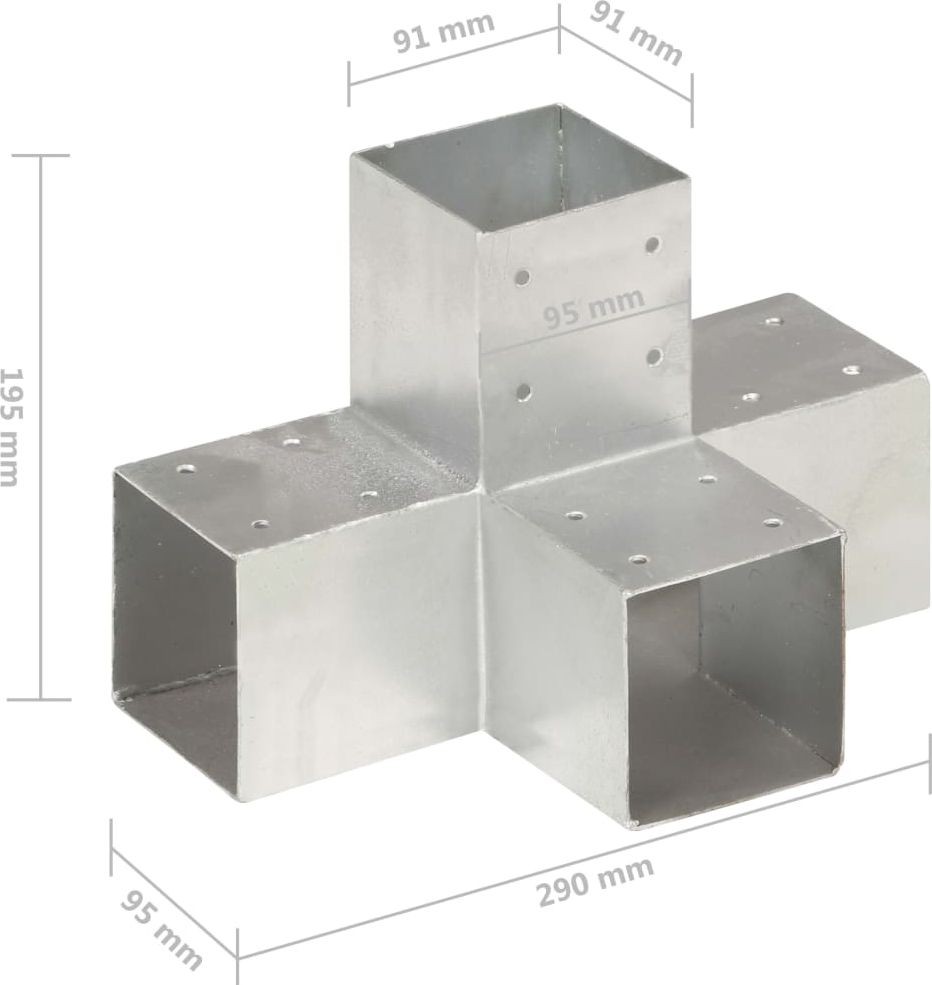 vidaXL Łącznik do słupków w kształcie X, galwanizowany metal, 91x91 mm