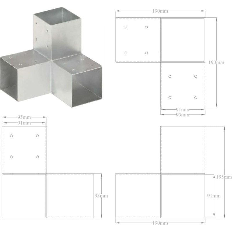 vidaXL Łącznik do słupków w kształcie Y, galwanizowany metal, 91x91 mm