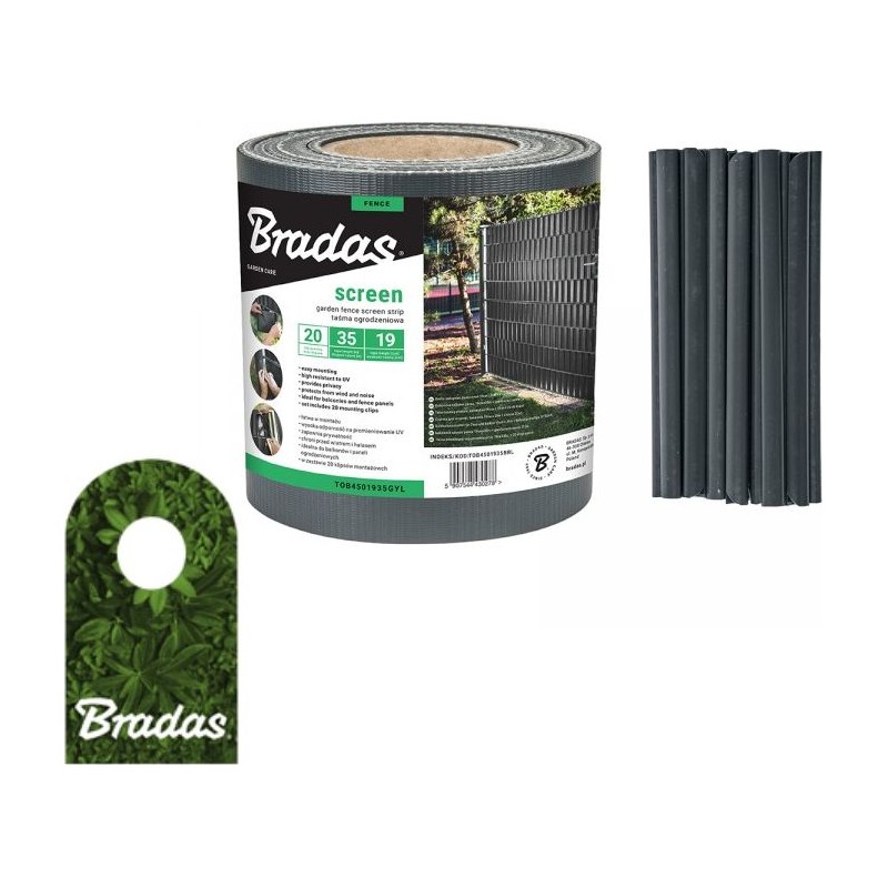 Bradas Taśma ogrodzeniowa balkonowa antracyt 19cm x 35m + klipsy BRADAS 0285