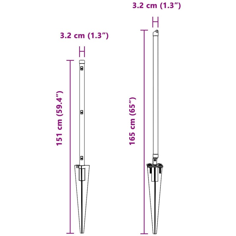 - Każdy słupek jest prosty do zainstalowania z dołączonymi kolcami i łącznikami – wystarczy użyć podbijaka i taśmy mierniczej.