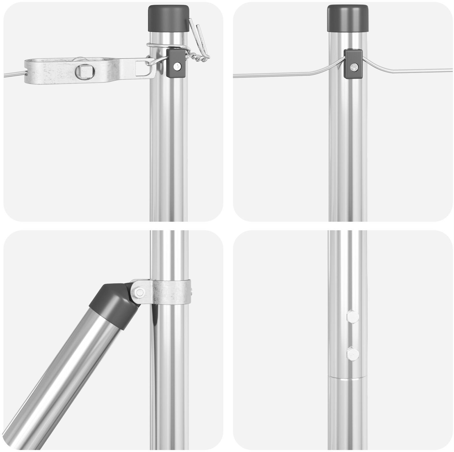 - Każdy zestaw zawiera wszystkie niezbędne akcesoria, jak słupy, podstawy i wsparcie dla drutu naciągowego, co ułatwia montaż bez potrzeby dodatkowych zakupów czy narzędzi, więc masz wszystko, co potrzebne do sprawnej instalacji.