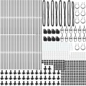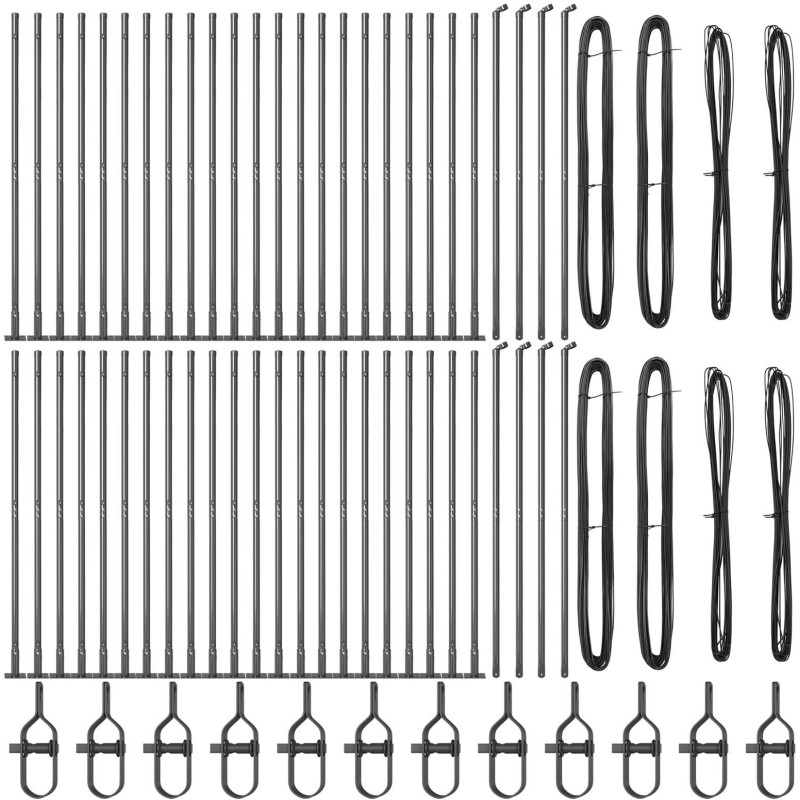 - Delivery Contains: 44 x Słup, 8 x Słup kątowy, 44 x Płyta podstawy, 44 x Zatyczka plastikowa, 132 x Wsparcie drutu napinającego, 8 x Zatyczka słupa kątowego, 8 x Elementy do słupa kątowego, 12 x Napinacz, 4 x 25 m Drut wiążący, 4 x 80 m Drut napinający