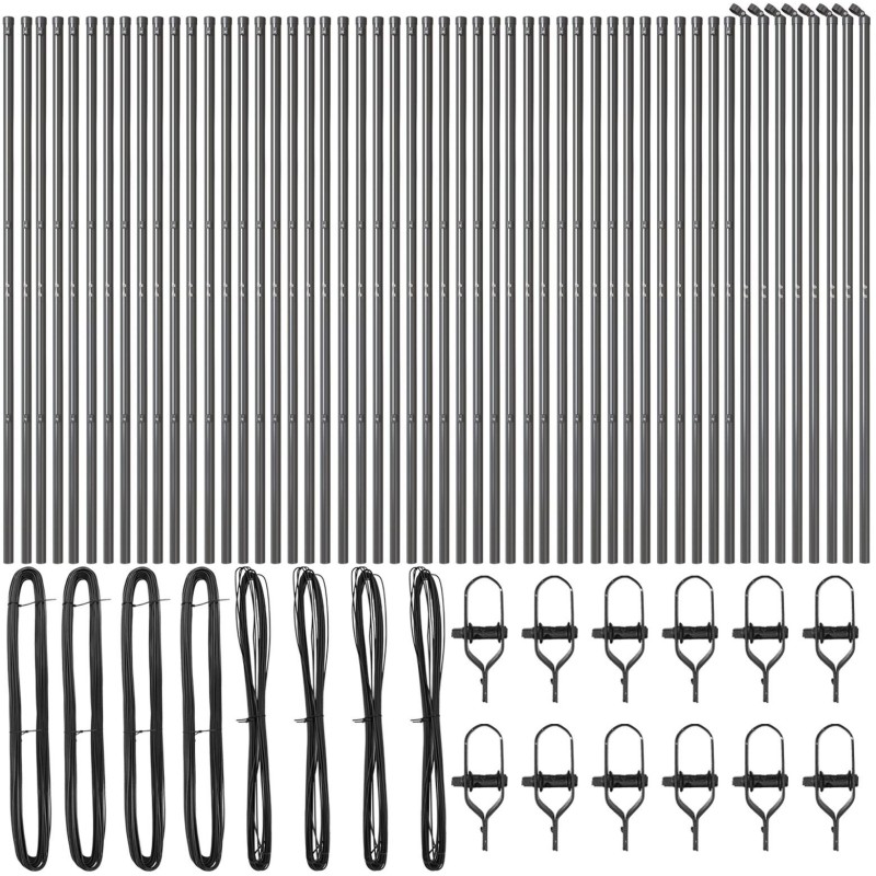 Słupki ogrodzeniowe 52 szt. Szare 32 mm 150 cm Stal ocynkowana