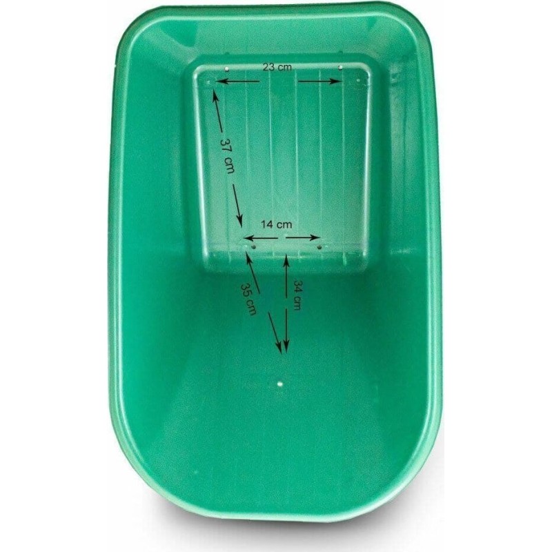 Oferujemy Państwu solidną, plastikową misę do taczki o pojemności 100 litrów, udźwig do 250kg. Wanna wykonana jest z PVC o grubości około 3mm. Miska do taczki to niezbędny sprzęt, który z biegiem czasu może się zniszczyć poprzez wrzucanie do nich ostrych kamieni, czy też innych przedmiotów. Dlatego warto w porę się ubezpieczyć i kupić nowe koryto, żeby móc bez zbędnej przerwy kontynuować prace, nawet gdy stara misa się popsuje. Nie musisz już wyrzucać całej taczki i produkować zbędnych śmieci, wystarczy zakupić misę i można uratować jeszcze sprawny stelaż i koło. Dzięki dużej pojemności i wysokim udźwigu, misa świetnie sprawdzi się do transportu liści, gałęzi, kamieni, gruzu, worków z ziemią czy nawozu. Idealnie nadaje się również do transportu materiałów płynnych.