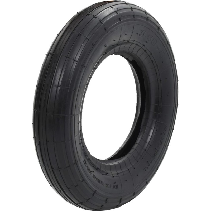 Kolor: czarny Materiał: guma Rozmiar opony: 3.50-8 4PR Średnica zewnętrzna: 36 cm Średnica wewnętrzna: 20 cm Szerokość: 8 cm Maksymalne obciążenie: 120 kg Prosty montaż Uwaga: nie do użytku na autostradzie