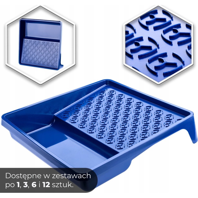 Wyrób jest łatwy w czyszczeniu, co usprawnia mycie narzędzia po malowaniu ścian w pokoju syna, przemalowywaniu piwnicy czy ozdabianiu kuchni. Kuweta to niezbędne akcesorium każdego gospodarza. Zestaw zawiera 12 sztuki.