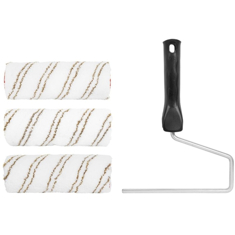 W skład zestawu wchodzą trzy wałki oraz ergonomiczny uchwyt, co czyni go kompletnym narzędziem do malowania. Dzięki temu możesz zrealizować różnorodne projekty malarskie bez potrzeby dokupywania dodatkowych akcesoriów.