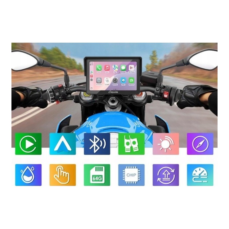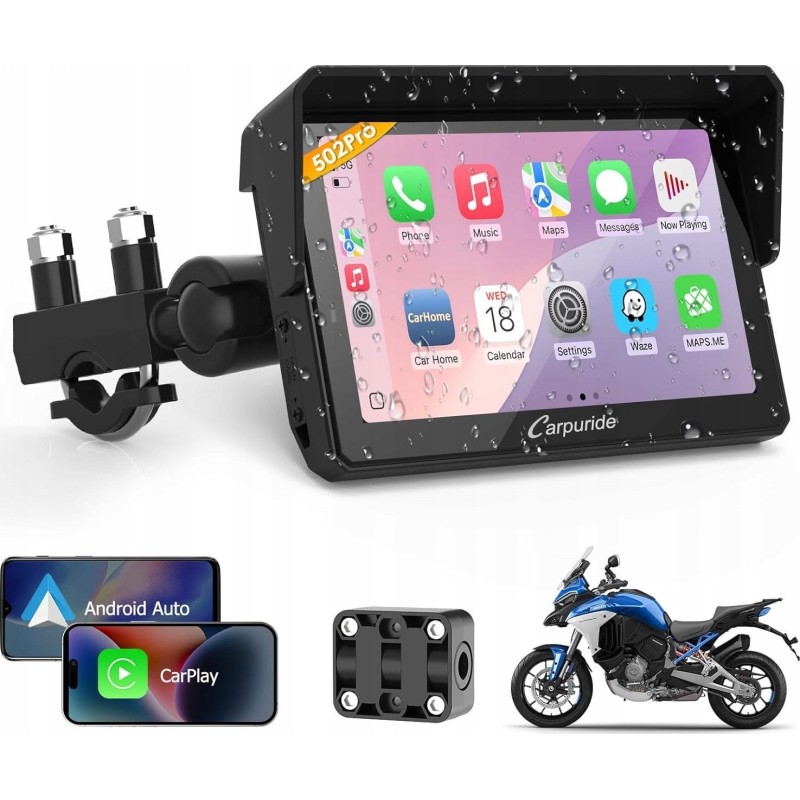 Carpuride W502PRO motocykl CarPlay Android Auto Bluetooth wodoszczelna GPS