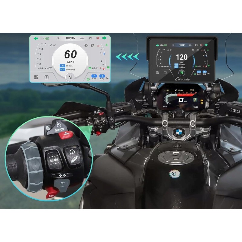 CARPURIDE W502BS Pro to nowatorski ekran motocyklowy, zaprojektowany z myślą o miłośnikach motocykli BMW. Dzięki funkcjom CarPlay i Android Auto, użytkownicy mogą łatwo połączyć swoje urządzenia mobilne, co umożliwia wygodne korzystanie z nawigacji, prowadzenie rozmów telefonicznych oraz odtwarzanie ulubionej muzyki w trakcie jazdy.