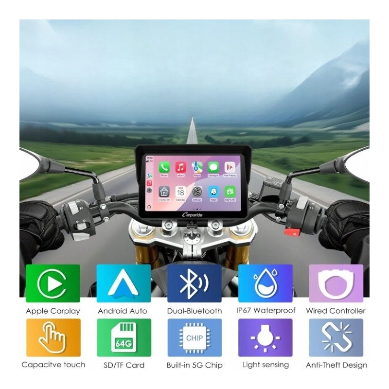 Motocyklowy ekran Carpuride W702S Carplay/Android Auto – Nowoczesne rozwiązanie dla motocyklistów
