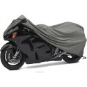 Nakrycie jest wykonane z wytrzymałego poliestrowego materiału, który jest odporny na przetarcia i rozdarcia. Materiał charakteryzuje się 100% wodoszczelnością i odpornością na wiatr. Nakrycie jest przystosowane do użytku przez cały rok, doskonale chroni pojazd przed śniegiem, deszczem i wiatrem. Nakrycie posiada dodatkowe gumowe wykończenie i wewnętrzną impregnację UV. Nie brudzi się, łatwo je utrzymać w czystości. Nakrycie ma gumowany ściągacz na dole i pasek do ściągania, aby dodatkowo przylegać do motocykla i chronić przed wiatrem. Jest trójwymiarowe, idealnie dopasowuje się do motocykla, jest uniwersalne, pasuje na każdy pojazd o wymiarach pełnej nakrycia.