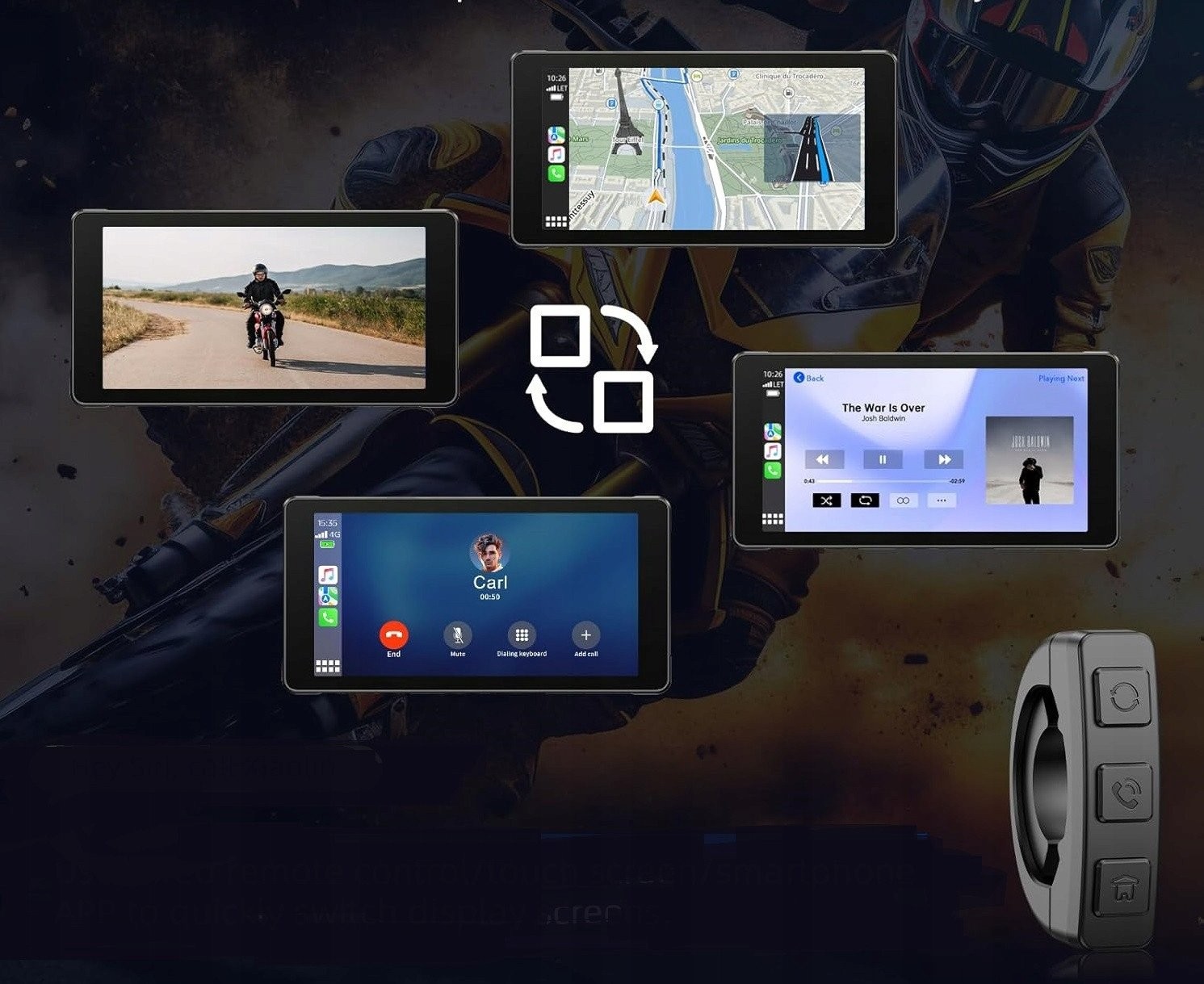 Volam Carplay dysponuje 5,5-calowym ekranem dotykowym HD IPS o rozdzielczości 1520 x 720, co zapewnia intuicyjne i szybkie reakcje. Ekran jest odporny na różne warunki atmosferyczne, co umożliwia jego normalne użytkowanie zarówno w deszczu, jak i w silnym słońcu.