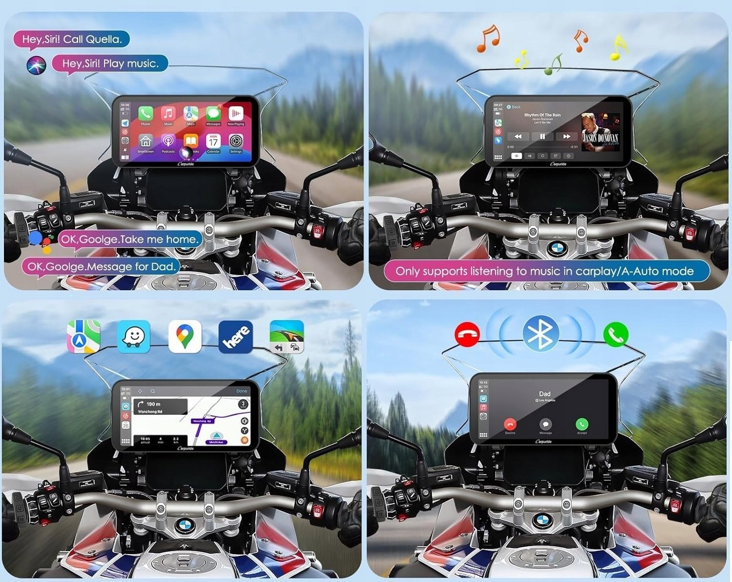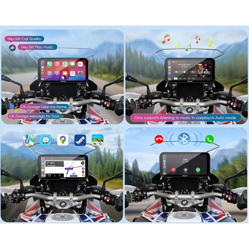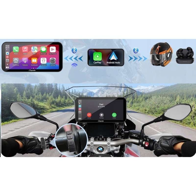 - 【BT Trans】Popraw swoje wrażenia z jazdy dzięki wygodnej łączności BT Trans. Zsynchronizuj ekran Carpuride Motorcycle 603d CarPlay ze smartfonem i zestawem słuchawkowym lub kaskiem obsługującym Bluetooth. Wykonuj i odbieraj połączenia telefoniczne bezprzewodowo lub ciesz się ulubioną muzyką bez zdejmowania kasku. Pozostań połączony i ciesz się korzyściami płynącymi z komunikacji bez użycia rąk, podczas gdy telefon pozostaje bezpiecznie w kieszeni.