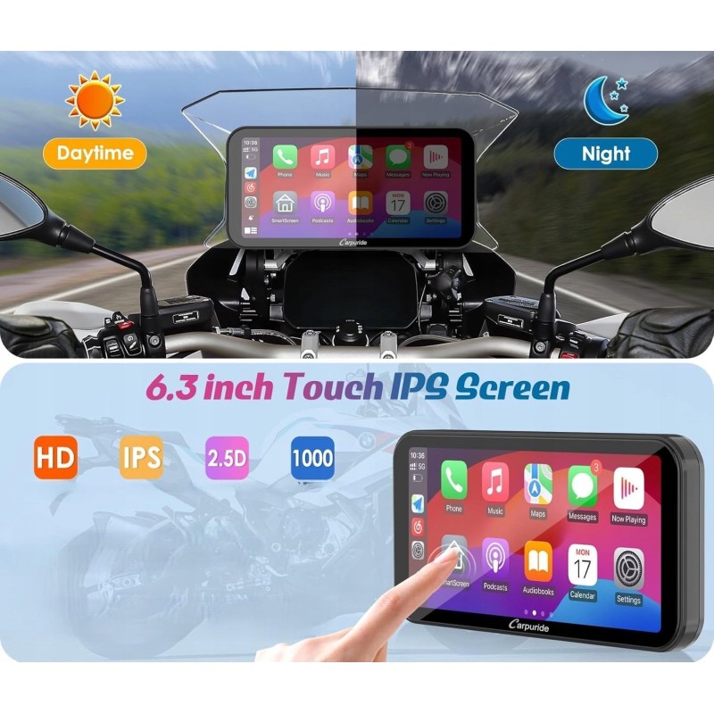Carpuride W603B Motocyklowy ekran Carplay BMW wodoszczelny 6,3"GPS