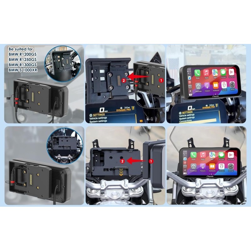 - 【Wskazówka】Carpuride 603B Carplay jest wyposażona w uchwyt BMW i uniwersalny uchwyt pierścieniowy.