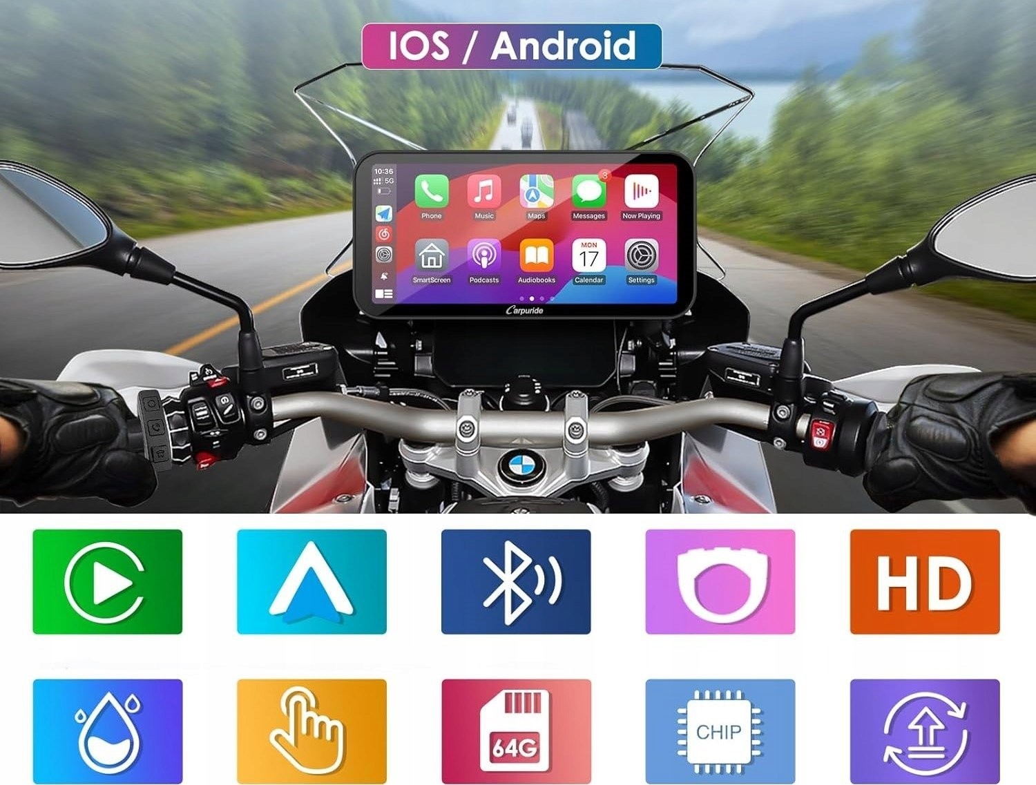 - 【Bezprzewodowy system CarPlay i Android Auto dla BMW】: Motorowy Carpuride W603b jest przeznaczony do motocykli BMW i kompatybilny z samochodami CarPlay lub Android. Umożliwia koncentrację na drodze i bezpieczną jazdę. Dzięki bezprzewodowemu połączeniu smartfona z ekranem dotykowym motocykla przez Bluetooth można uzyskać dostęp do nawigacji na mapie, rozmów telefonicznych, odtwarzania muzyki, wiadomości tekstowych i innych za pomocą Siri lub Google Assistant. Wskazówka: jest kompatybilny tylko z iOS 6+ i Android 11+.