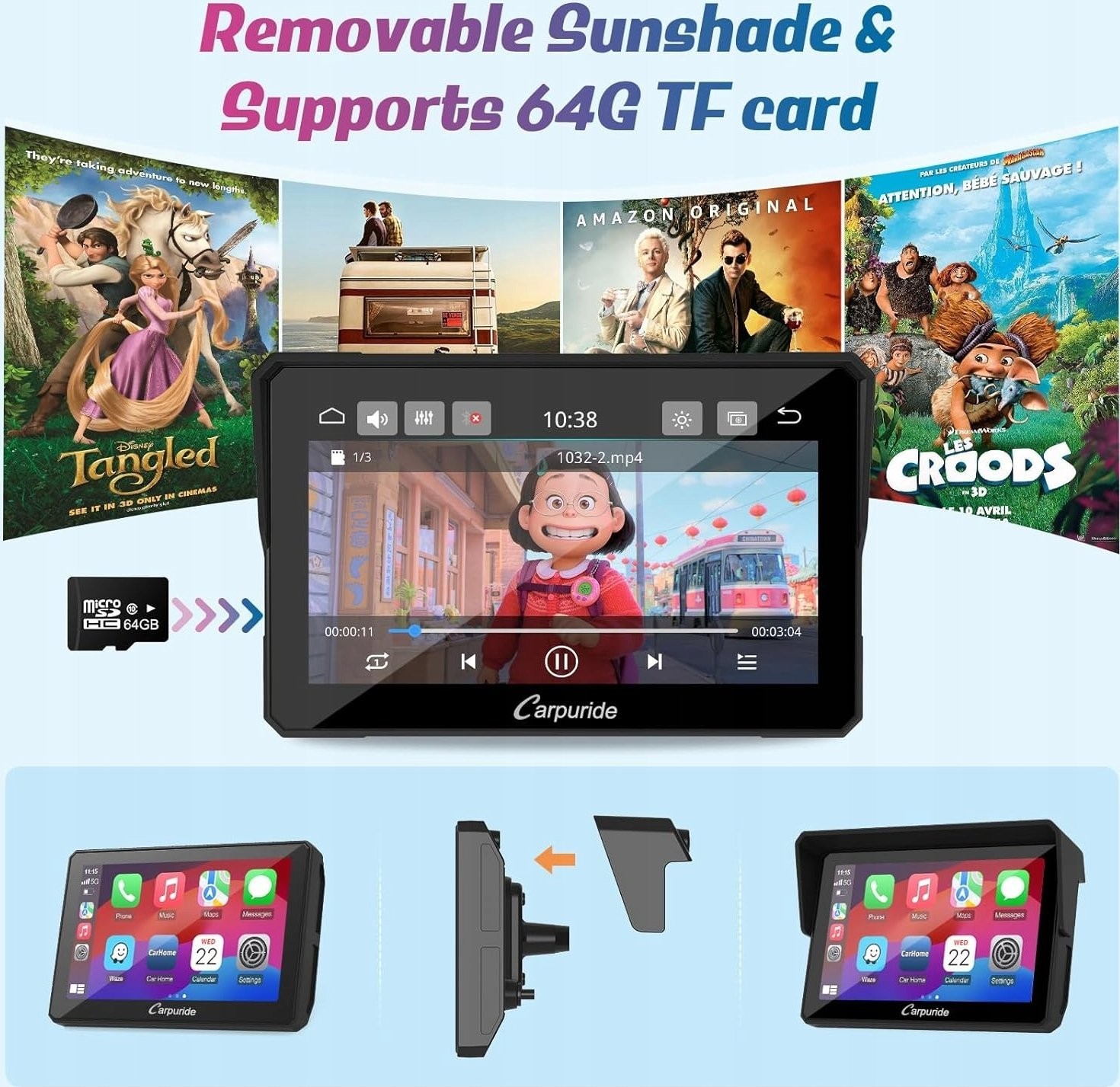 - ️【5-calowy ekran dotykowy HD IPS】: Ekran CarPlay dla motocykli jest wyposażony w 5-calowy ekran dotykowy HD IPS o rozdzielczości 1024 x 600, co zapewnia bardziej intuicyjny efekt wizualny i poprawia czułość dotyku. Żywe 65 000 kolorów i maksymalna jasność 1000 nitów zapewniają wyraźne i wspaniałe wrażenia wizualne nawet przy jasnym świetle słonecznym na świeżym powietrzu, a także zawiera kartę TF 64G.