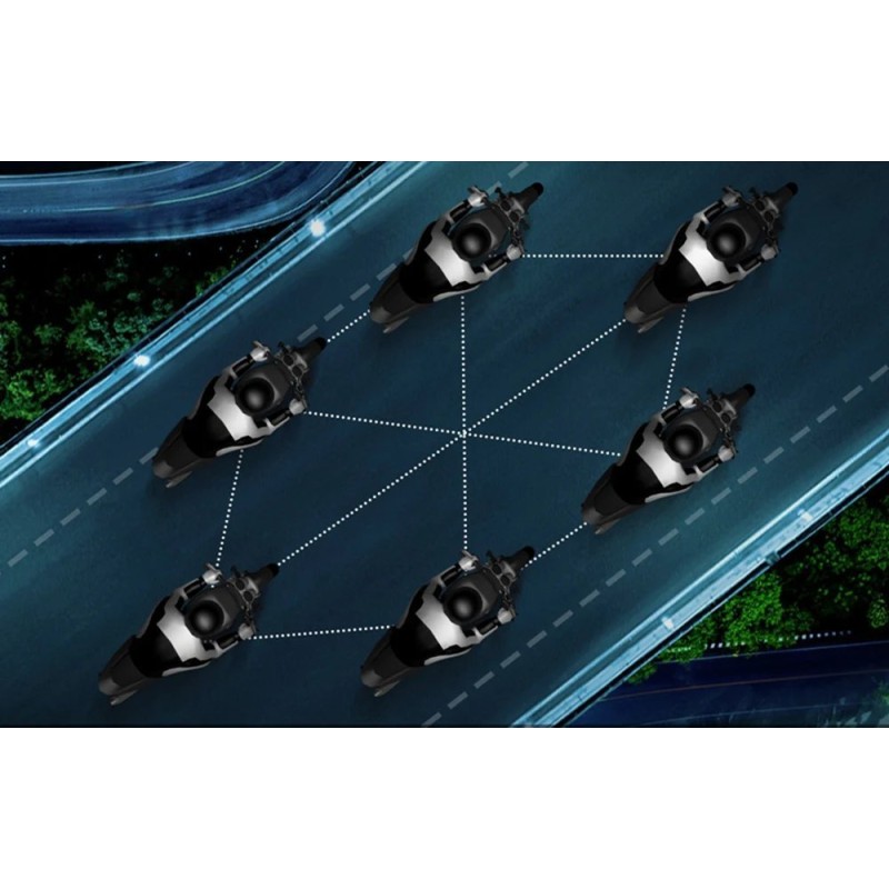 Technologia Mesh umożliwia dynamiczne połączenia między użytkownikami, co oznacza, że sieć może się automatycznie rekonfigurować w przypadku utraty zasięgu z jednym z urządzeń, zapewniając ciągłość komunikacji w grupie. Ta elastyczność czyni Q8 niezawodnym wyborem dla motocyklistów ceniących stabilność połączeń.