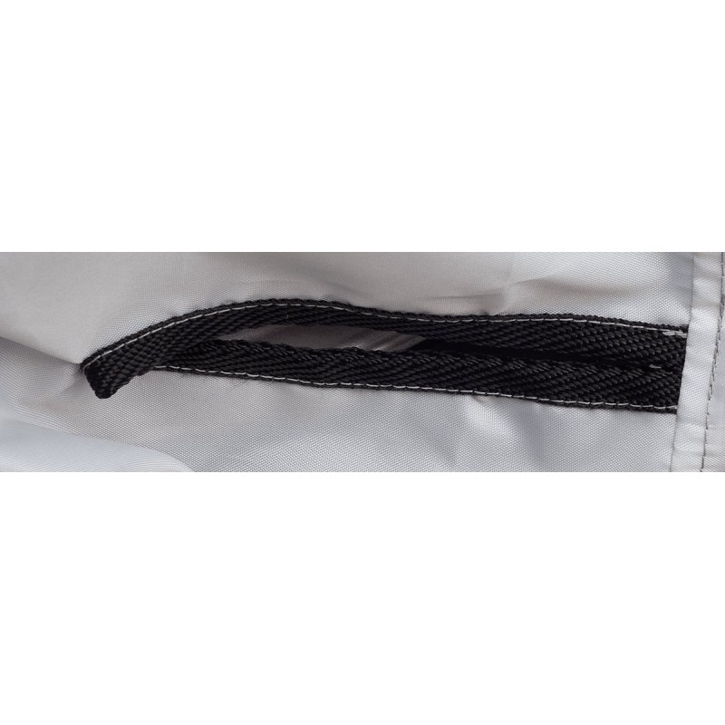 W przedniej części pokrowca (przy kole) wykonane dwa otwory, które umożliwiają przełożenie linki lub łańcucha antykradzieżowego.