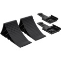 - Kliny pod koła: sprytna konstrukcja klinów umożliwia ich bezproblemowe wsunięcie pod koło. Ponadto prążkowana powierzchnia zwiększa przyczepność koła, co pozwala zachować stabilność pojazdu i zapewnia bezpieczeństwo.