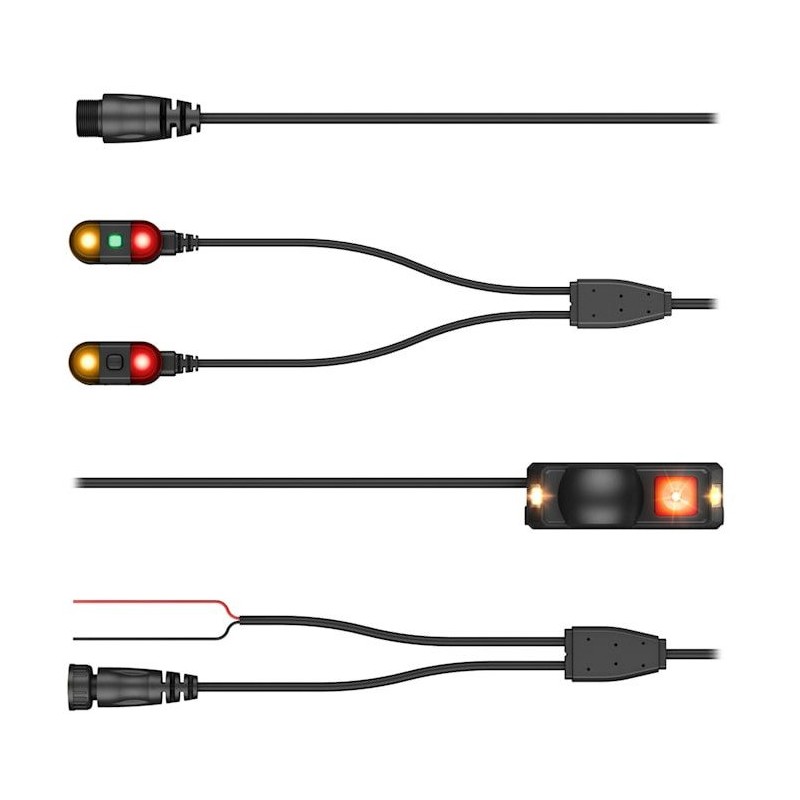 Garmin Zümo R1 Radar jest wyposażony w zewnętrzne światła, które poprawiają widoczność motocykla na drodze. Zintegrowane światła boczne w kolorze bursztynowym oraz opcjonalne czerwone światło z tyłu sprawiają, że motocykl staje się bardziej zauważalny dla innych uczestników ruchu, co dodatkowo zwiększa bezpieczeństwo jazdy.