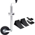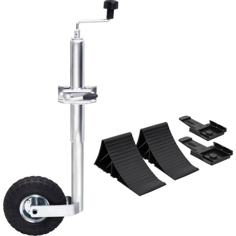 To koło podporowe zawiera niezbędne akcesoria, które pozwolą na prawidłowe zaparkowanie przyczepy i zwiększą Twoje bezpieczeństwo podczas załadunku i rozładunku.