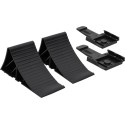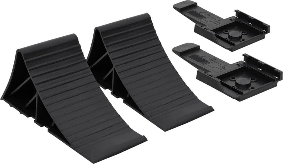 - Kliny pod koła: sprytna konstrukcja umożliwia bezproblemowe wsunięcie klina pod koło. Ponadto prążkowana powierzchnia zwiększa przyczepność koła, co pozwala zachować stabilność pojazdu i zapewnić bezpieczeństwo.