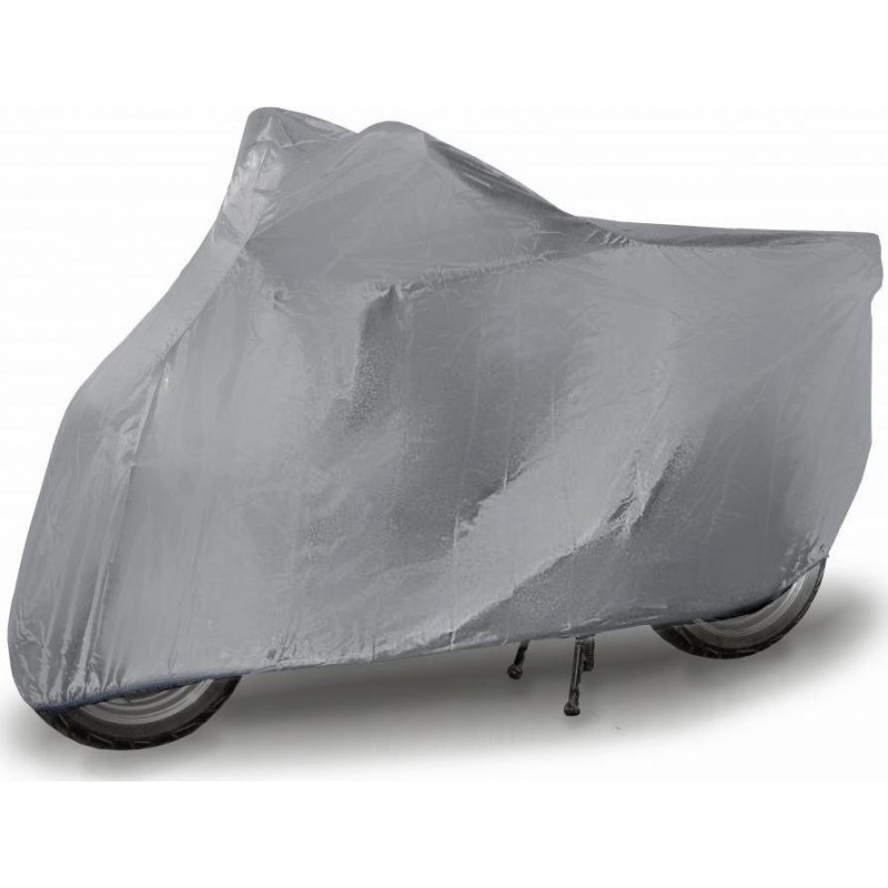 Wykonana z bardzo wytrzymałego wodoodpornego materiału, który od wewnętrznej strony posiada delikatną warstwę, która zapewnia ochronę przed zarysowaniami, itp. Plandeka doskonale sprawdza się przed zabrudzeniem motocykla, zapobiega również oblodzeniu. Prosty uniwersalny montaż. Zapakowany w praktyczne, zamykane na zamek opakowanie, w którym plandekę można łatwo złożyć i schować po użyciu. Łatwe mocowanie plandeki - zakłada się ją tylko na motocykl, część z wszytą gumą mocuje się od spodu za odpowiednimi fałdami motocykla.