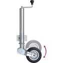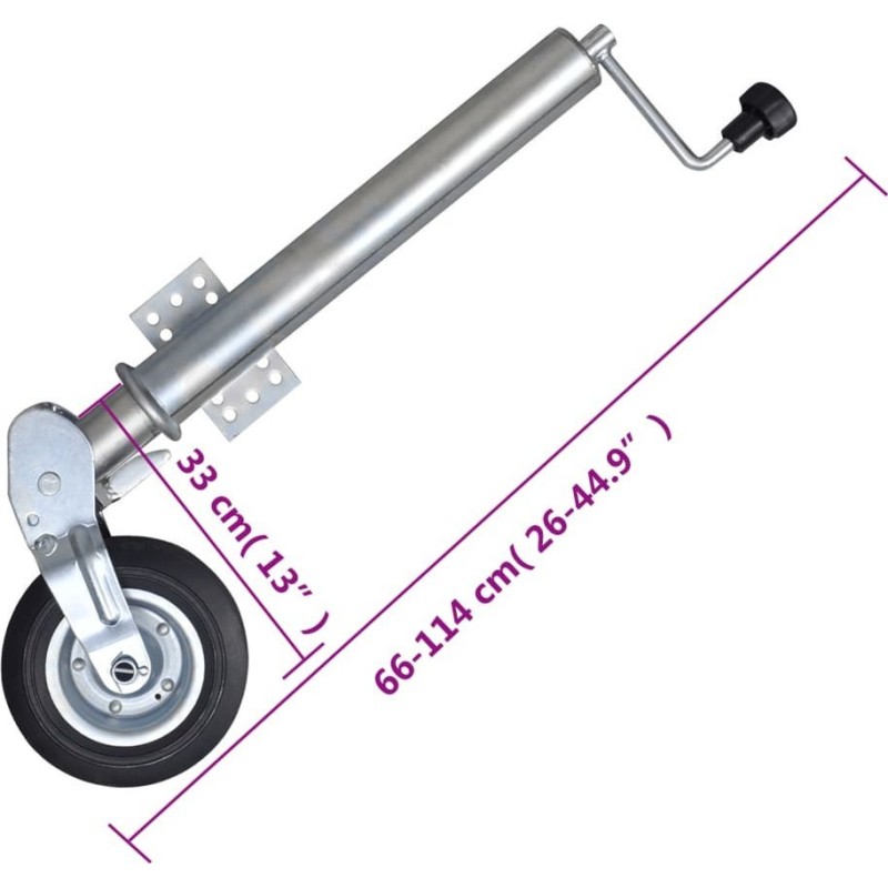 - Koło podporowe: wykonane z wysokiej jakości stali galwanizowanej koło jest odporne na rdzewienie i solidne. Jego maksymalne obciążenie wynosi 400 kg, dzięki czemu sprawdzi się doskonale przy większości przyczep, również kempingowych. Koło podporowe z litej gumy umożliwia łatwe manewrowanie przyczepą.