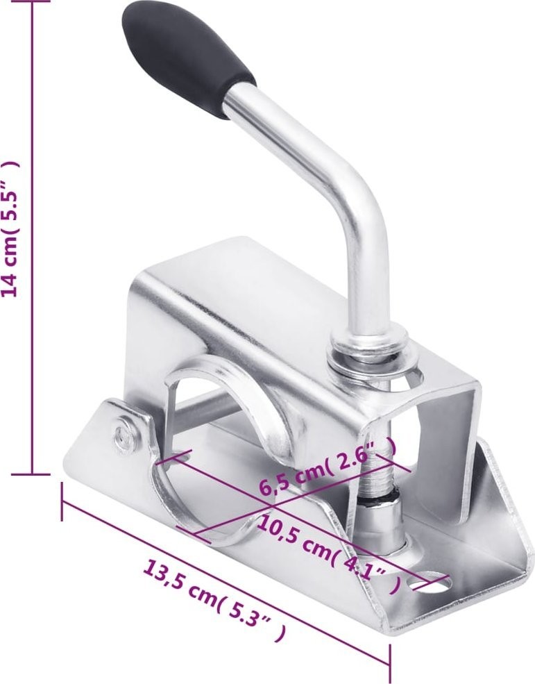- Praktyczny zacisk: zacisk wyposażono w gumowy uchwyt na rączce, co zapewnia łatwość manewrowania. Wystarczy przekręcić rączkę zgodnie z ruchem wskazówek zegara, aby otworzyć zacisk, a w kierunku przeciwnym, by go zamknąć. Zacisk można łatwo otworzyć, co umożliwia szybki demontaż wsporników i koła podporowego, dzięki czemu cały proces przebiega płynnie i skutecznie.
