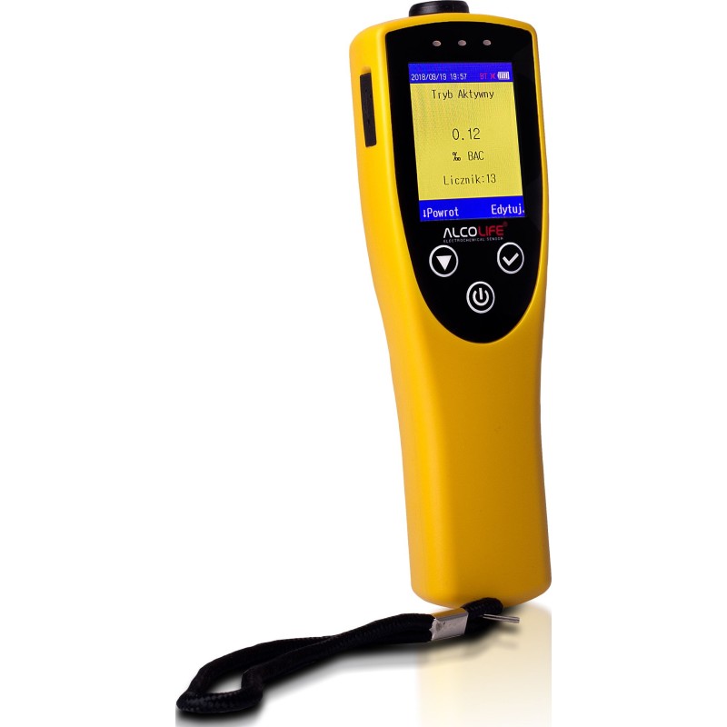 Dzięki dołączonemu oprogramowaniu (wersja PL), użytkownik z łatwością zaimportuje i wydrukuje wszystkie dane, również z komputera. Alkomat ALCOLIFE F9 ma możliwość zapisu 28 000 testów z pomiarów. Alkomat ALCOLIFE F9 posiada duży, czytelny 3 kolorowy wyświetlacz. W zależności od wyniku z badania, zmienia on swój kolor na zielony, żółty lub czerwony prezentując przy tym konkretne wyniki w formie liczb. Ta funkcja pozwala no dokładne sprawdzenie ile alkoholu w wydychanym powietrzu posiada osoba badana.