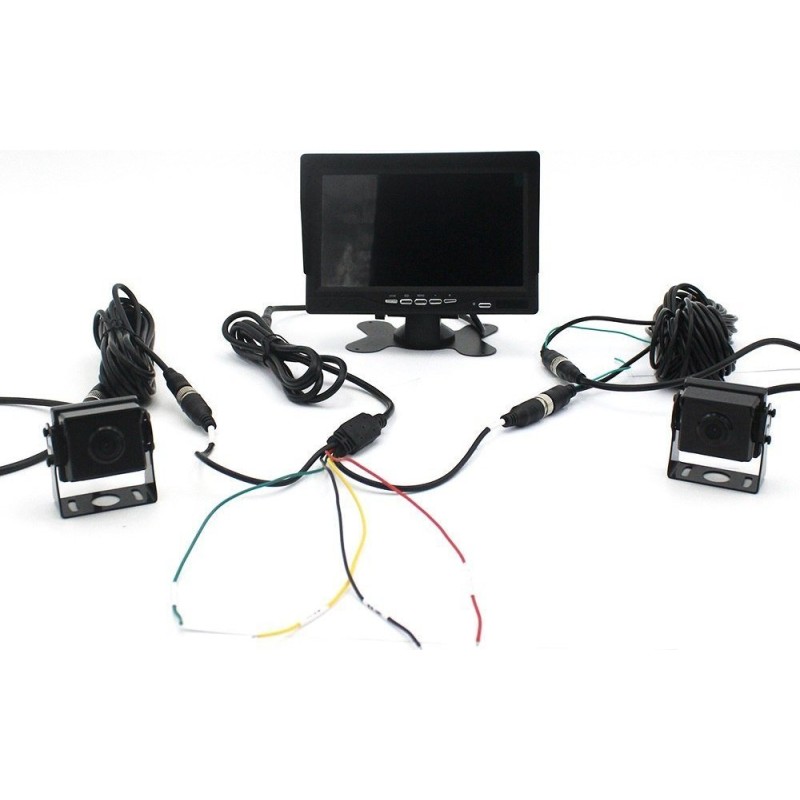 w zestawie: - monitor, - pilot, - okablowanie 4pin (2kpl) (15M)(5M), - kamera 2szt. (przód, tył), - osłona słoneczna, - podstawka, - instrukcja obsługi