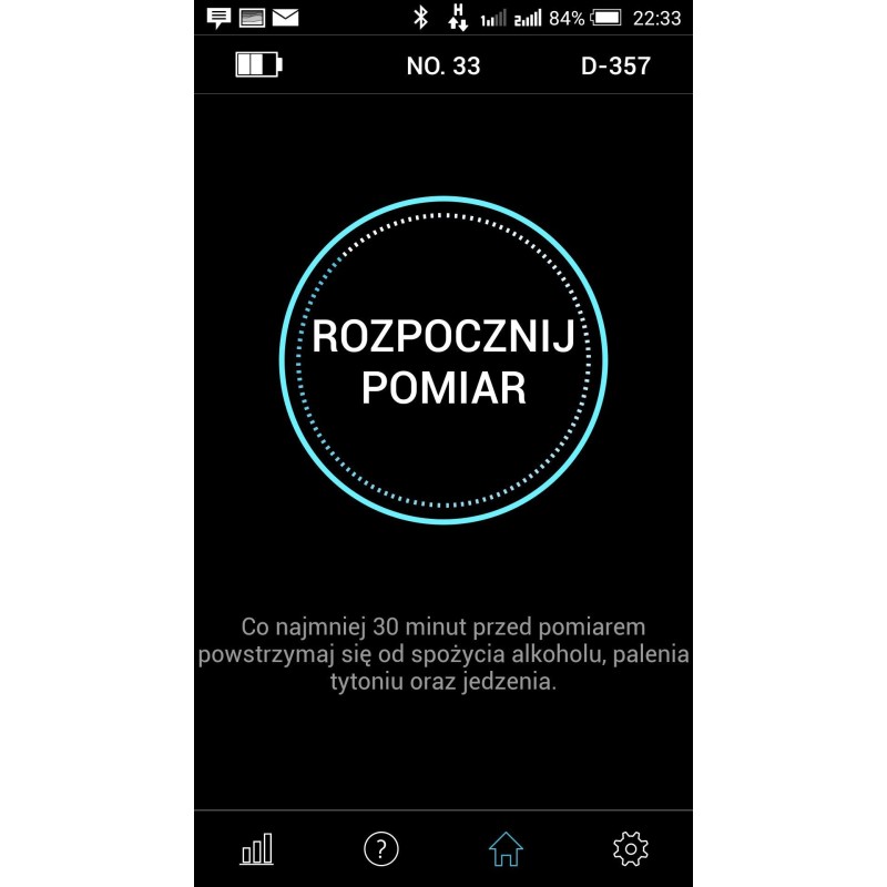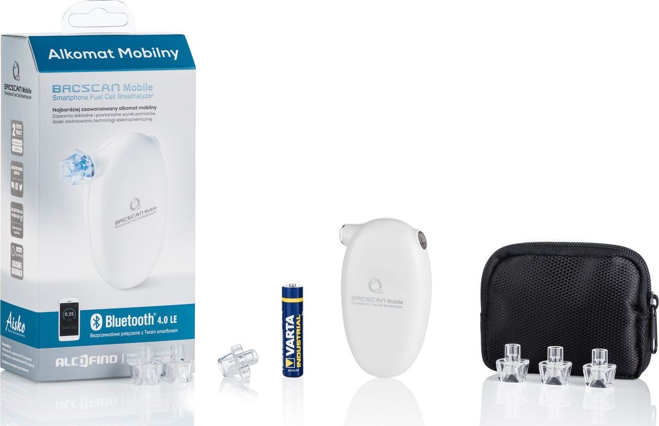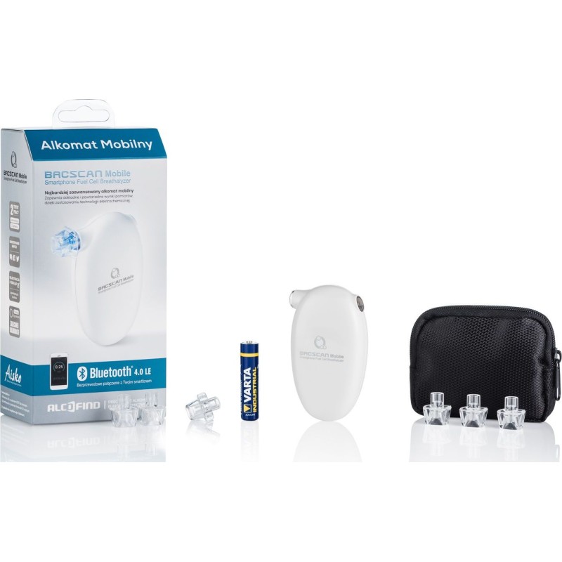 Alkomat elektrochemiczny z pamięcią 1000 pomiarów. Zakres pomiarowy wynosi 4 promile. Alkomat mierzy zawartość alkoholu z dokładnością do setnych części procenta.