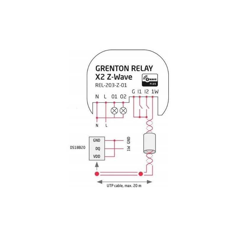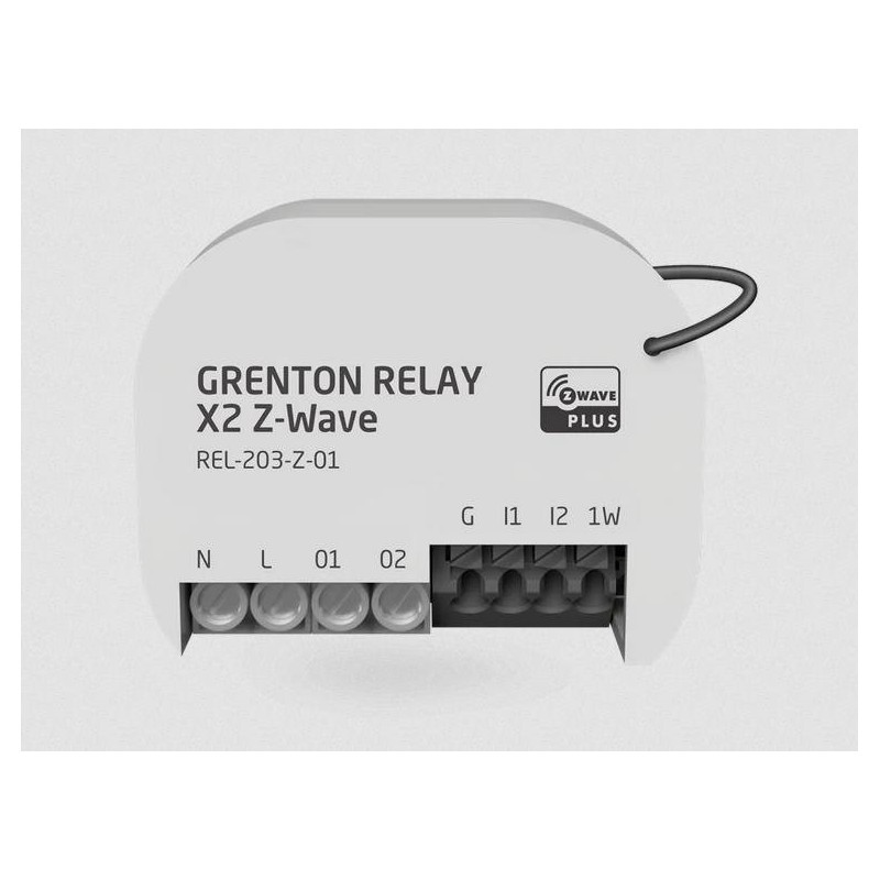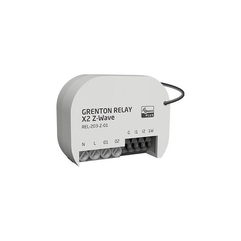 - Grenton RELAY x2 Z-Wave umożliwia włączanie / wyłączanie 2 różnych urządzeń (np. światła, ogrzewania, gniazdek). Jednocześnie umożliwia podłączenie do systemu inteligentnego domu 2 dowolnych elementów z wyjściem stykowym (włączniki światła, czujniki ruchu, czujniki dymu, czujniki zalania) oraz 1 czujnika temperatury 1-wire.