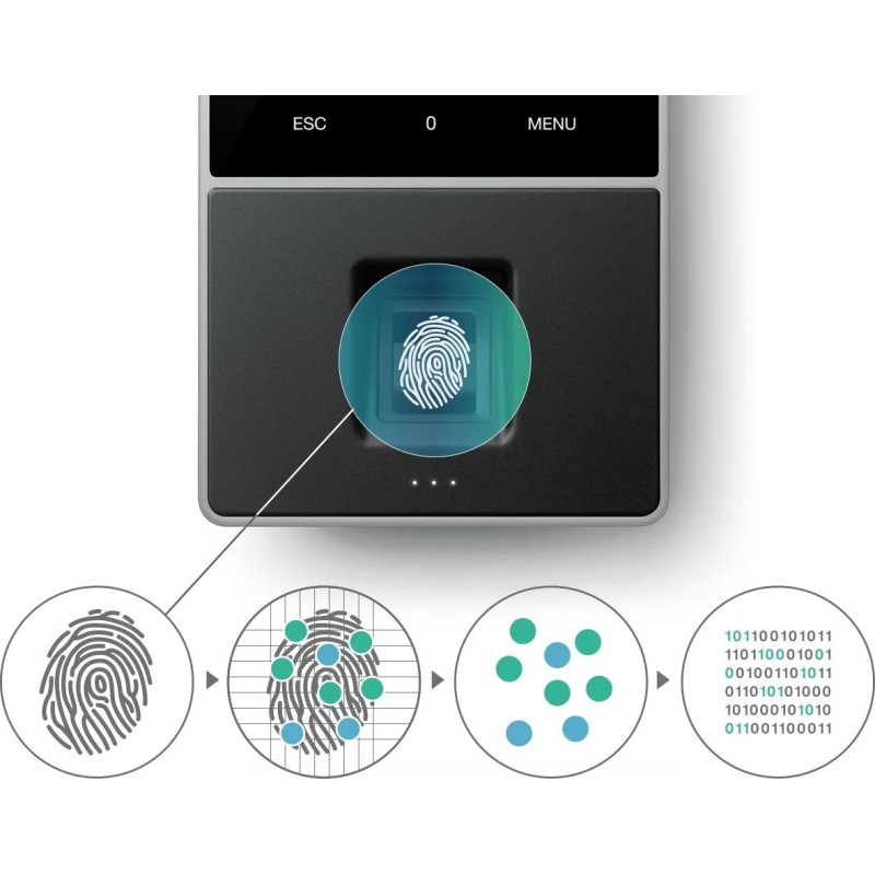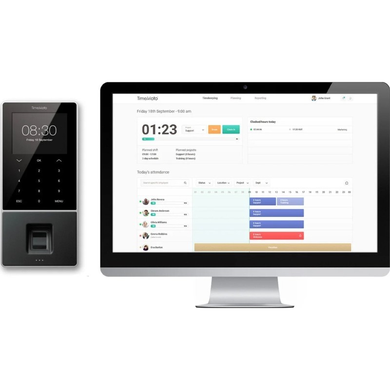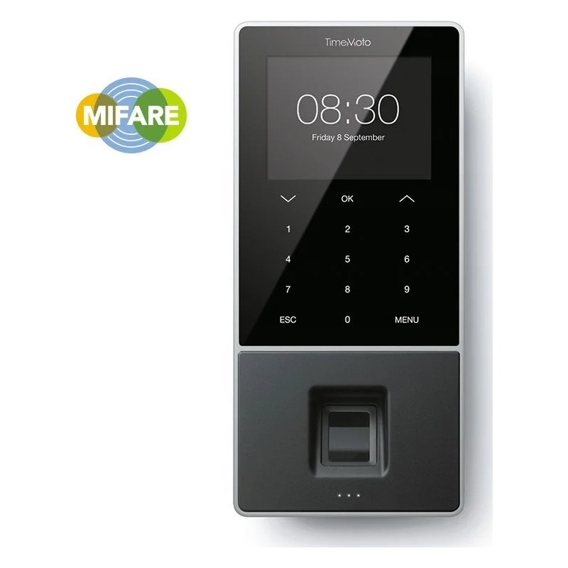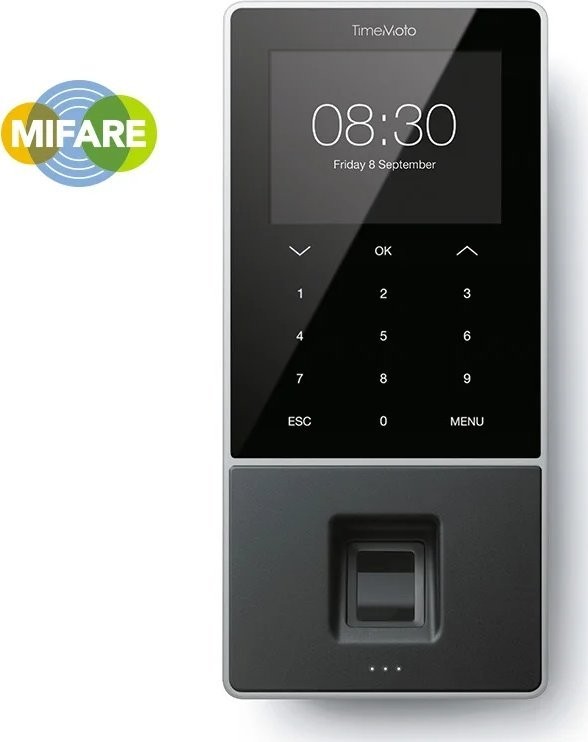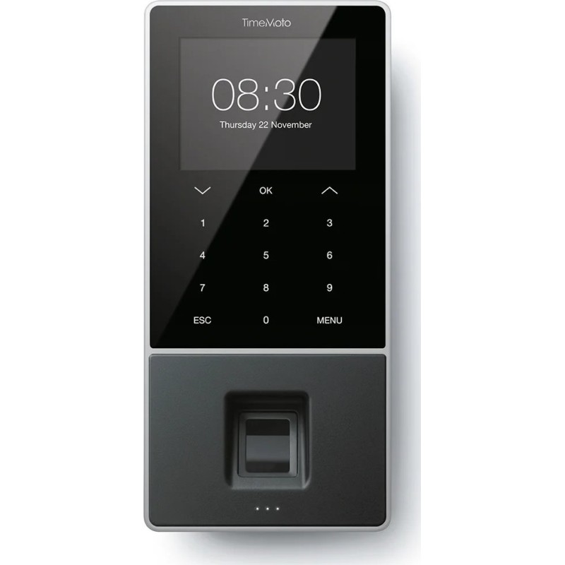 Safescan TM-828 SC. Kolor produktu: Czarny, Typ uwierzytelniania: Odcisk palca, Hasło, Karta zbliżeniowa, karta chipowa, Typ wyświetlacza: TFT. Rodzaj zasilania: DC, Napięcie wejściowe AC: 110 - 240 V, Napięcie wejściowe DC: 12 V. Obsługiwane systemy operacyjne Windows: Windows 10, Windows 7, Windows 8. Szerokość produktu: 99 mm, Głębokość produktu: 44 mm, Wysokość produktu: 215 mm
