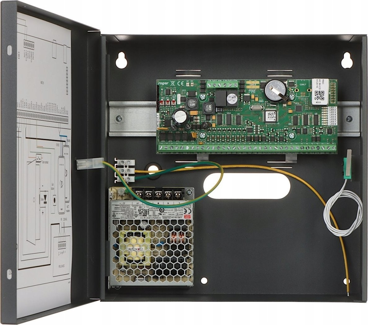 W skład zestawu wchodzi metalowa obudowa z zasilaczem oraz sieciowym sterownikiem dostępu