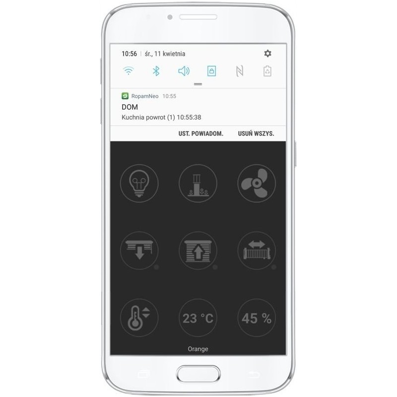 Sterowanie systemem możliwe jest również z poziomu smartfona przy pomocy aplikacji RopamNeo (system Android/iOS) - aplikację można pobrać w Google Play lub App Store.