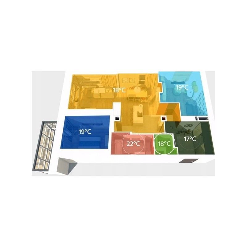 Dzięki możliwości sterowania aż 8 strefami, regulator oferuje wielostronną kontrolę nad systemem grzewczym w budynku.