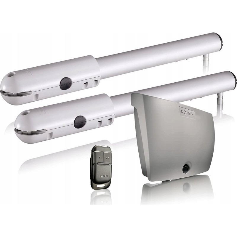 Napęd do dwuskrzydłowych bram Somfy SGS 201, dedykowany do bram o maksymalnej długości skrzydła 1,8 metra. Czas otwarcia i zamknięcia bramy wynosi maksymalnie 16 sekund. Napęd przeznaczony do pracy do 20 cykli na dobę. Pozwala na częściowe uchylenie bramy dla pieszych oraz posiada automatyczne wykrywanie przeszkód i możliwość ręcznego otworzenia bramy, gdy brakuje zasilania. W zestawie znajdują się 2 siłowniki, centrala i pilot.