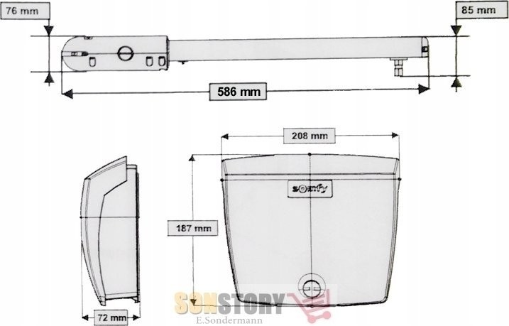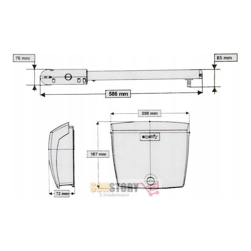 Jest to napęd do dwuskrzydłowych bram firm Somfy SGS 201. Skrzydło może mieć maksymalną długość 1,8 metra, a brama maksymalną wagę 400 kg.