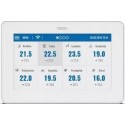 Aby ustawić parametry w podrzędnym sterowniku strefy, wystarczy kliknąć na obszar ekranu z informacją o stanie. Wygląd wyświetlacza sterownika można dostosować do własnych preferencji, korzystając z funkcji ustawień ekranu. Można m.in. ustawić wygaszacz ekranu w postaci zegara lub daty. Dodatkowo, użytkownik ma możliwość wyboru kolorystyki wyświetlacza oraz włączenia lub wyłączenia dźwięku.