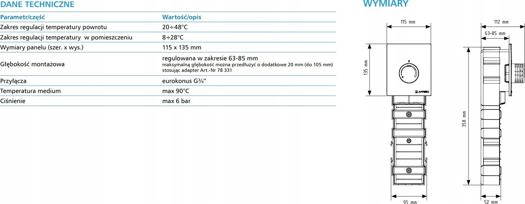 - zakres regulacji temperatury: 8 ÷ 28°C,