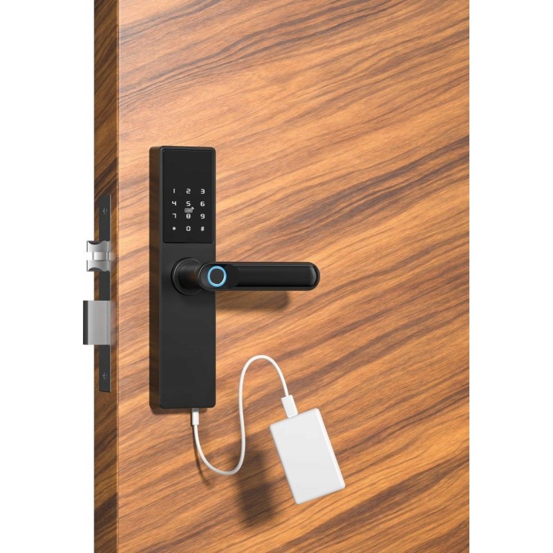 Hedo Inteligentna klamka do drzwi Tuya, Elektroniczny zamek do drzwi na odcisk palca, kod, Wi-Fi, RFID - czarna