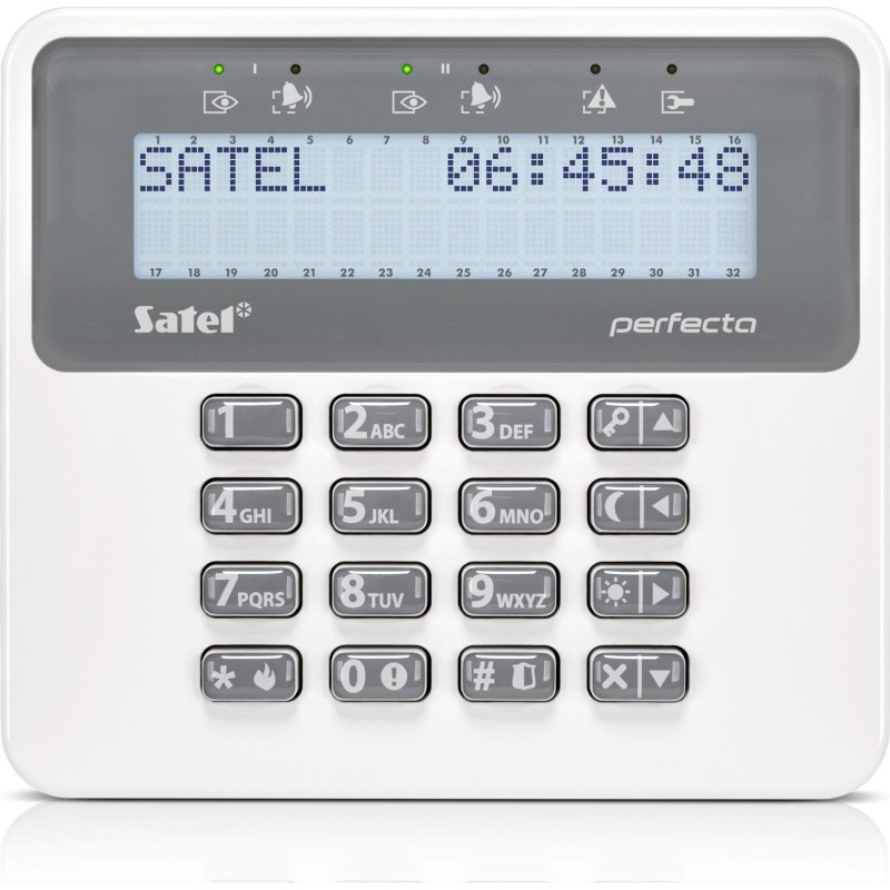Klawiatura, oprócz klawiszy numerycznych, posiada także przyciski umożliwiające szybkie włączanie wybranego trybu dozoru (dziennego, nocnego, pełnego) i wywoływanie trzech alarmów: napad, pożar, pomoc. Atrakcyjny wygląd manipulatora PRF-LCD sprawia, że może się on wpisać w wystrój chronionych przez system wnętrz.
