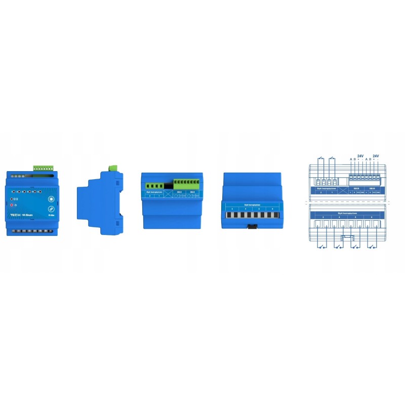 Urządzenie komunikuje się z centralą Sinum za pomocą przewodowej magistrali TECH SBUS, co umożliwia niezależne sterowanie każdym z podłączonych urządzeń. Dzięki tej technologii, użytkownicy mogą cieszyć się pełną kontrolą nad swoim systemem zasilania oraz oświetlenia, co znacząco podnosi komfort codziennego użytkowania.