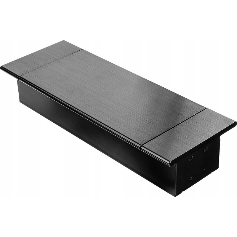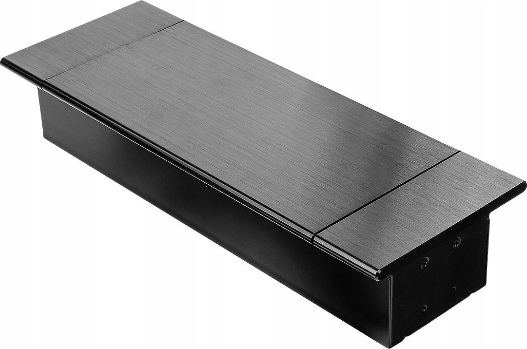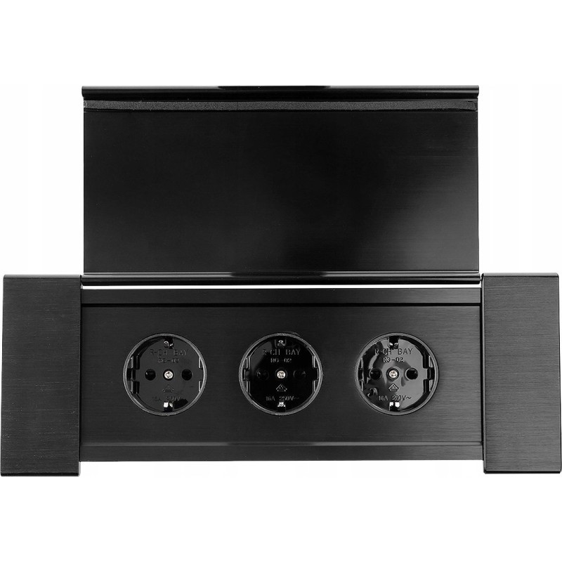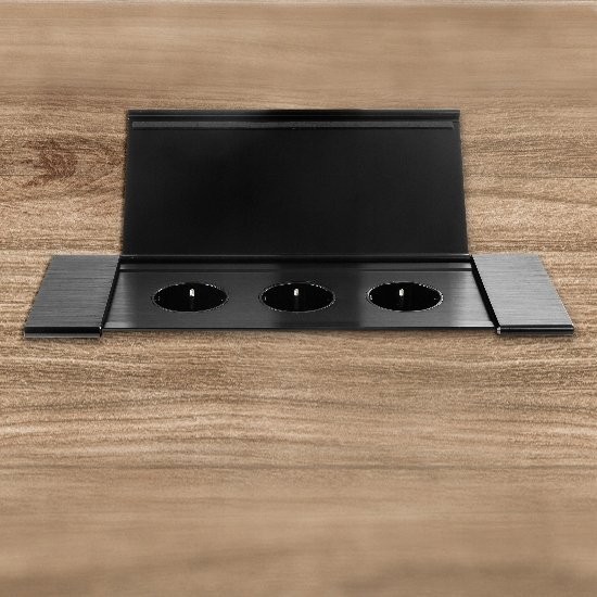 Gniazdo blatowe z otwieranymi drzwiczkami 3x Schuko Spacetronik Stal szczotkowana czarne