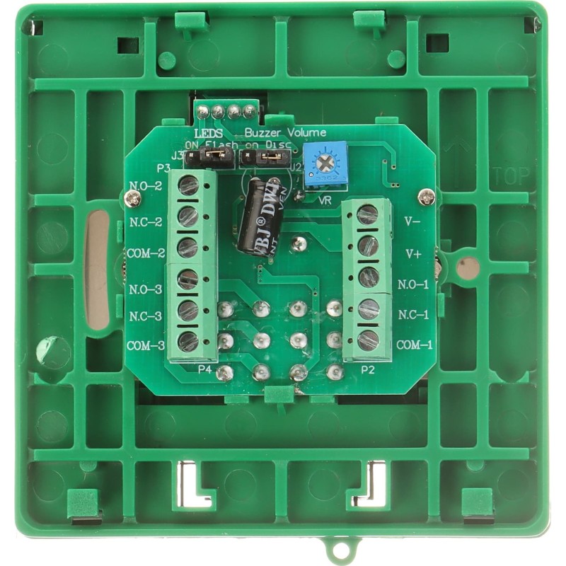 Przycisk APWK-LED posiada sygnalizację optyczną i akustycznąSygnalizacja optyczna odbywa się za pomocą diod LEDWskaźniki LED mogą świecić w dwóch kolorach - zielony (stan normalny) lub czerwony (stan alarmu)Sposób pracy czerwonej diody LED można ustawić na jeden z trzech sposobów - włączona / wyłączona / migającaMożliwe jest również ustawienie trybu pracy sygnalizacji akustycznej - cichy / przerywany / ciągły oraz ustawienie natężenia generowanego dźwięku