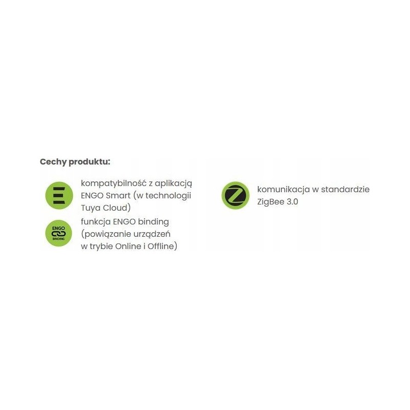 - • Pracuje w standardzie ZigBee 3.0 – utrzymuje zapisane zasady również offline