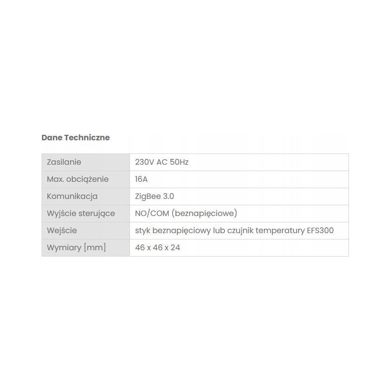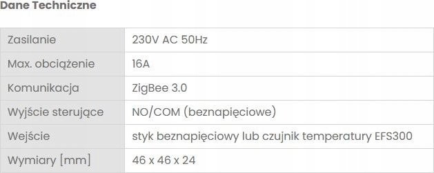 - Wejście: styk beznapięciowy lub czujnik temperatury EFS300