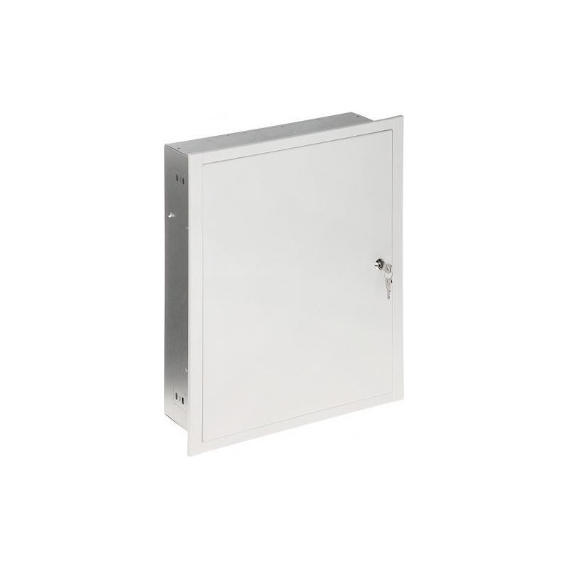 Specyfikacja W opakowaniu: 2 kluczyki Materiał wykonania: Stal - malowanie proszkowe Płyta mocująca: Drewno Kolor: Biały - RAL9003 Waga: 3.57 kg Wymiary zewnętrzne obudowy: 539 x 444 x 120 mm 500 x 400 x 120 mm (bez kołnierza) Wymiary wewnętrzne: 495 x 395 x 110 mm Gwarancja: 2 lata